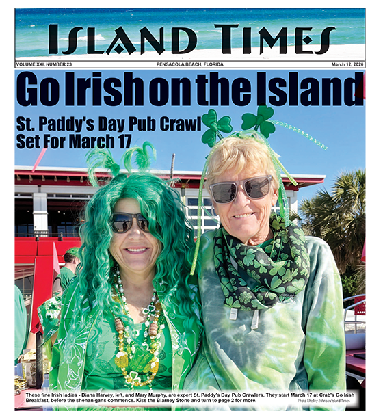 Home Archives Pensacola Beach Events Pensacola Beach Mardi Gras About Subscribe Here's The Latest Issue of Island Times Click to get Island Times via Email ———— What’s Up ———— Featured Mar 12, 2026 One Lane of Pensacola Beach Blvd. Northbound To Close Monday-Friday from March 23 - April 3 Mar 12, 2026 Starting March 23, the inside lane of Northbound Pensacola Beach Blvd will be closed. Mon-Fri, 7 a.m. to 5 p.m. Read More → Mar 12, 2026 Mar 12, 2026 Spring Break Safety Tips from Escambia County Mar 12, 2026 Headed to the Beach for Spring Break? Read more for safety, fun and beach rules. Read More → Mar 12, 2026 Mar 11, 2026 Go Irish on the Island at St. Paddy’s Day Pub Crawl Mar 11, 2026 It’s just a wee bit of leprechaun magic that courses through the veins of Island folks at the St. Paddy’s Day Pub Crawl, March 17. Read More → Mar 11, 2026 Mar 11, 2026 Books By the Bay Returns to Pensacola With Nationally Acclaimed Authors Mar 11, 2026 Books by the Bay returns to Bayview Park, March 28. Read more for details. Read More → Mar 11, 2026 ———— FACEBOOK ———— Island Times - Pensacola Beach's Newspaper